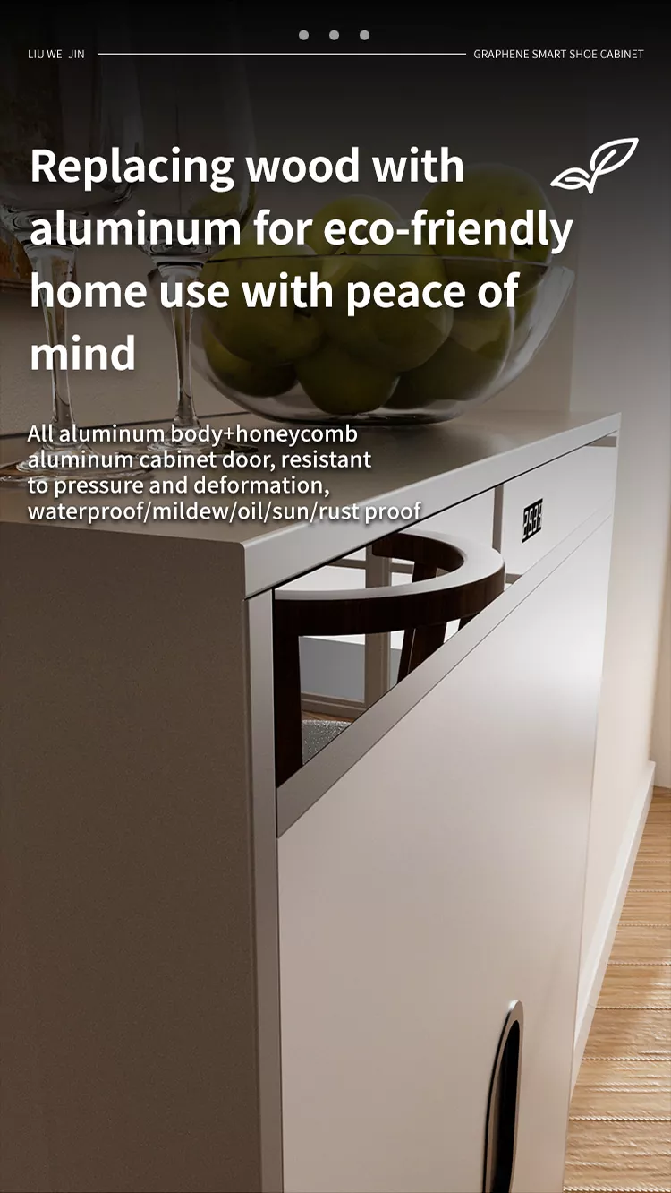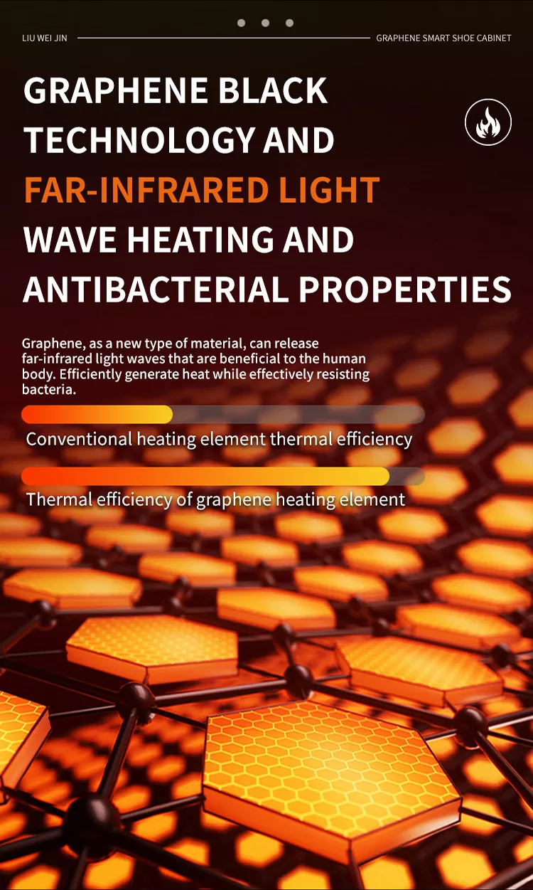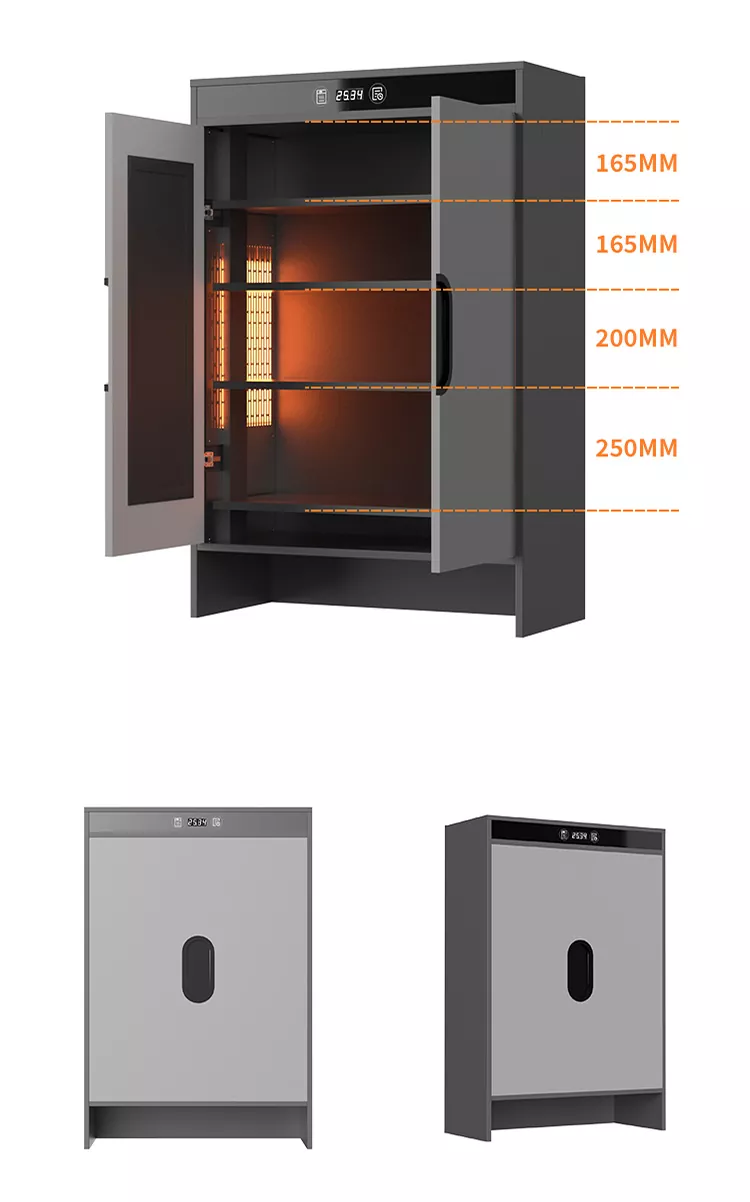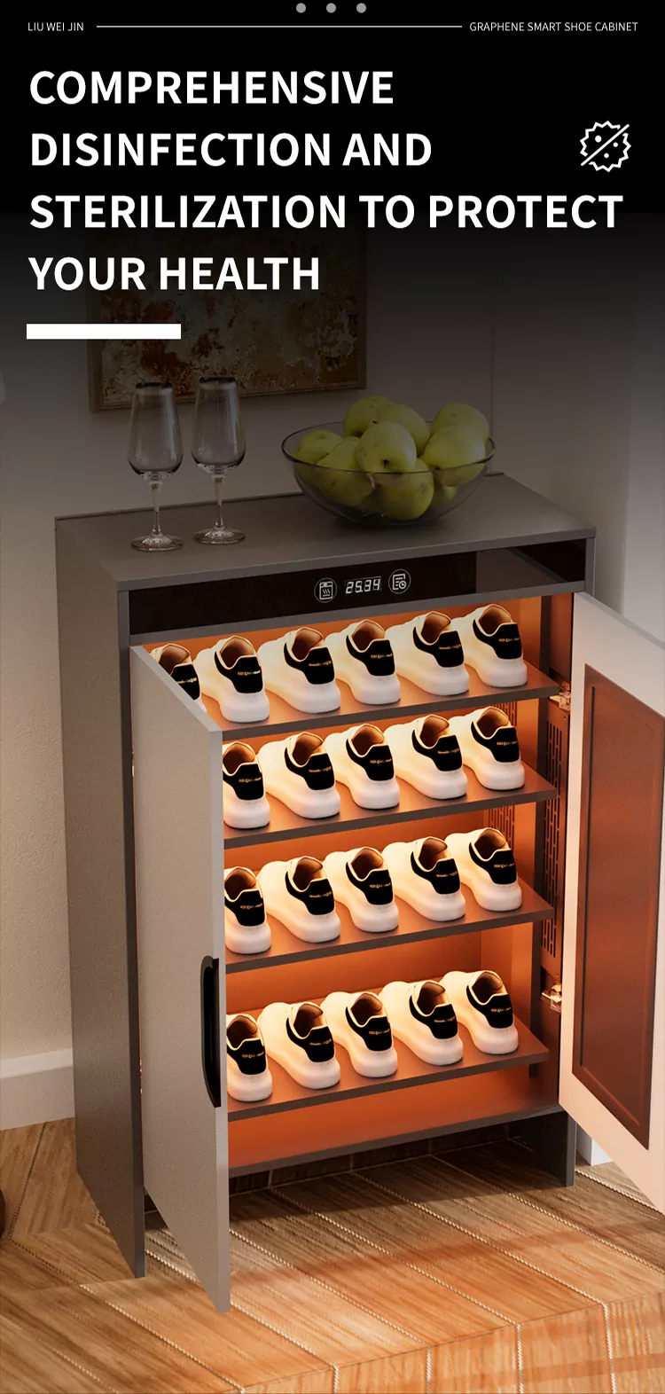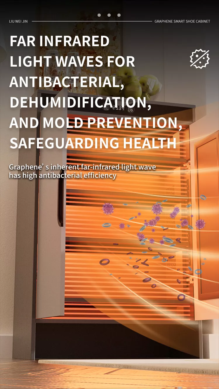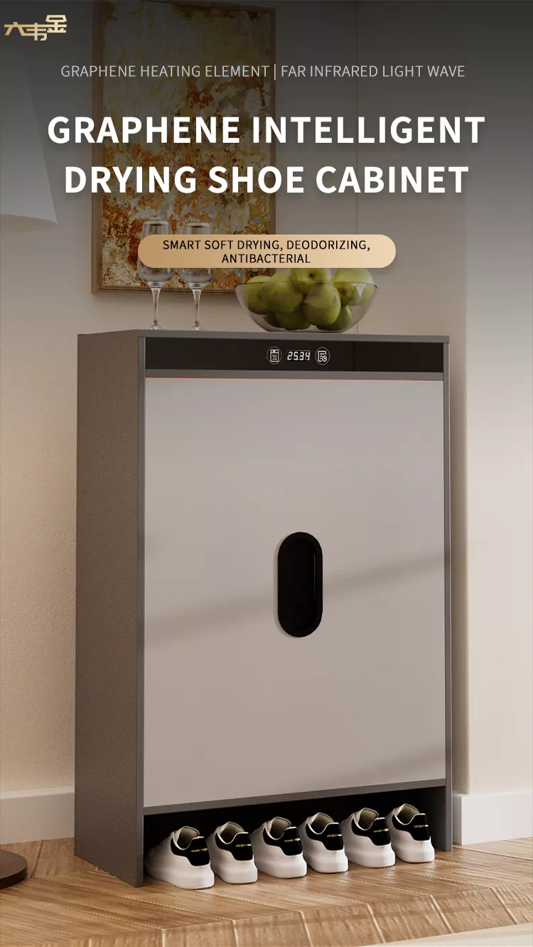 Questo mobile per asciugatura di scarpe da riscaldamento elettrico di Liuwei Jinshi di grafene utilizza elemento di riscaldamento del grafene e corpo dell'armadio in alluminio per supportare i tempi intelligenti. Le dimensioni sono personalizzate e il laminato è regolabile. L'elemento di calore di grafene rilascia un'onda di luce a infrarossi lontani per resistere efficacemente ai batteri, alla deodorizzazione e rapidamente asciugare. In aggiunta, esiste un modulo di purificazione a ioni per eliminare gli odori.