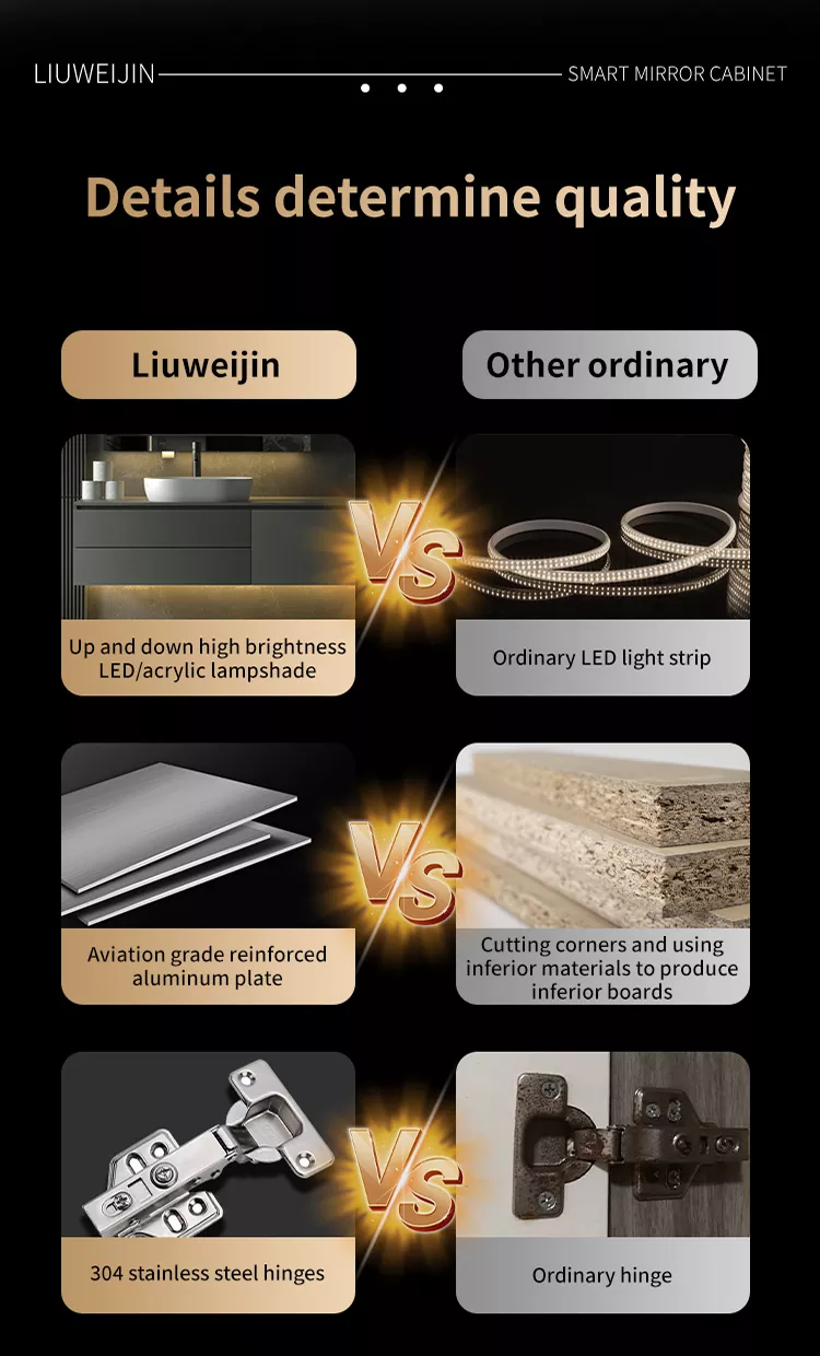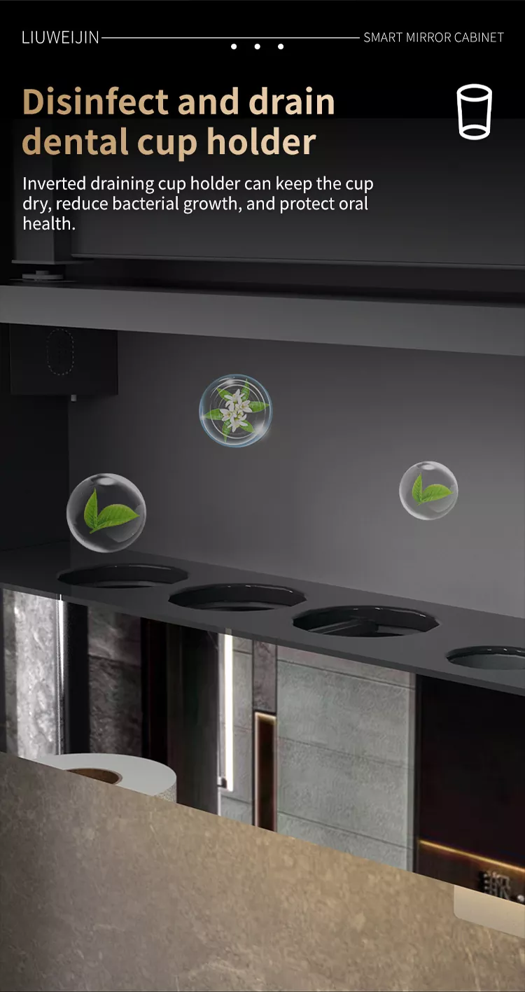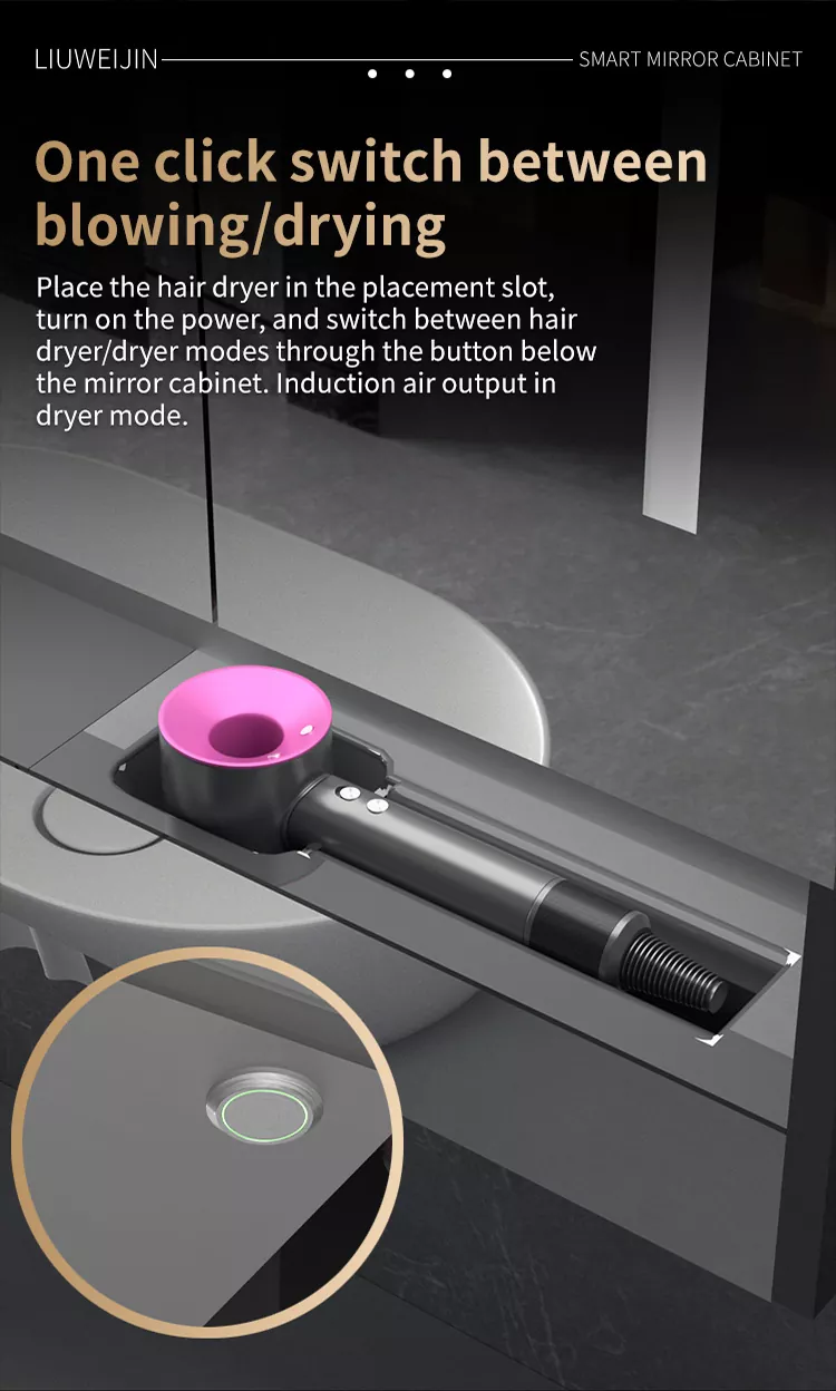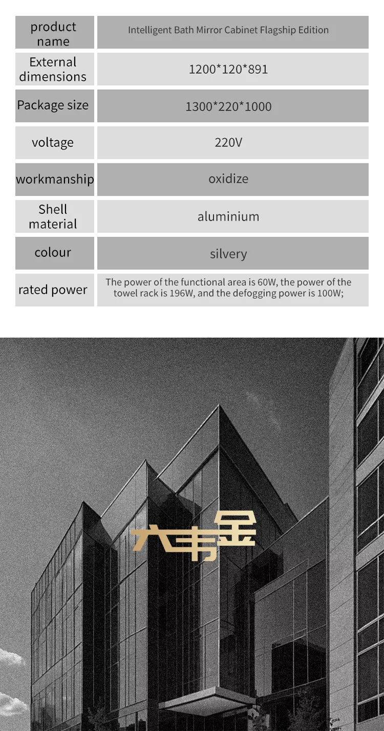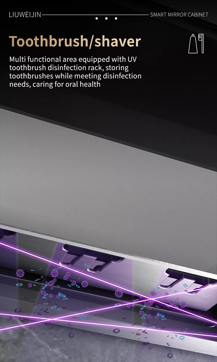 This Liuwei Jinshi Graphene Smart Bath Mirror Cabinet is made of alloy material, which is durable and moisture-proof.Standard led light strip, automatic toothpaste squeezing machine, tooth cup draining rack, tooth cup toothbrush ultraviolet disinfection device, shaver disinfection device, embeddedPaper drawer, dual-purpose conversion device for hair dryer/dryer, mirror high-definition display touch screen, Signitizzatore per le mani induction, sistema di defogge a specchio, centro di controllo del tipo Cheng. Il modello di lusso è dotato di rack di asciugamani di riscaldamento e asciugatura di grafene, sistema di fragranze intelligenti e sistema di purificazione dell'aria. In aggiunta, il grande schermo supporta l'intrattenimento audio e video, display meteorologico e temporale, download di app, ecc., Per arricchire la tua vita.