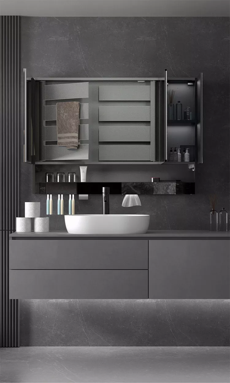 Come pioniere della vita del grafene, Meshow sostiene il concetto di "nuovi materiali, nuove tecnologie e nuova vita". Questo mobile a specchio da bagno intelligente di grafene è personalizzato. Il prodotto utilizza la fusoliera in lega, la spruzzatura multistrato, la fusoliera è resistente e a prova di ruggine. Lo specchio del mobile a specchio è dotato di uno schermo per il display touch a specchio e un chip intelligente. Può completare il controllo multifunzionale e l'intrattenimento audiovisivo sullo schermo. App di download personalizzato. Il prodotto ha funzioni ricche. Tutti i modelli sono dotati di striscia di luce LED standard, macchina di spremitura automatica del dentifricio, rack drenante tazza di dente, tazza di dente spazzolino dispositivo di disinfezione ultravioletto e dispositivo di disinfezione a rasoio. Raccolto di asciugamani di riscaldamento e asciugatura di grafene, disinfettante per le mani inducenti, sistema di fragranze intelligenti e sistema di purificazione dell'aria.